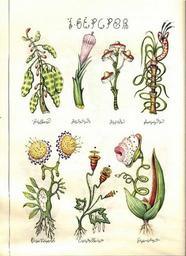 | Keywords: drawing cartoon print illustration sketch white background text Codex Seraphinianus,[1] originally published in 1981, is an illustrated encyclopedia of an imaginary world, created by the Italian artist, architect, and industrial designer Luigi Serafini during thirty months, from 1976 to 1978.[2] The book is approximately 360 pages long (depending on edition), and written in a strange, generally unintelligible alphabet.[3] Originally published in Italy, the book has since been released in several countries.[4] It is believed that this book is in the public domain but this has not been confirmed. Codex Seraphinianus,[1] originally published in 1981, is an illustrated encyclopedia of an imaginary world, created by the Italian artist, architect, and industrial designer Luigi Serafini during thirty months, from 1976 to 1978.[2] The book is approximately 360 pages long (depending on edition), and written in a strange, generally unintelligible alphabet.[3] Originally published in Italy, the book has since been released in several countries.[4] It is believed that this book is in the public domain but this has not been confirmed. |