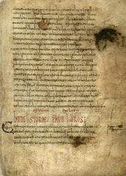 | Keywords: Códice de Roda.jpg es Códice de Roda folio 1r El titular miniado en rojo es el íncipit de la Historiae adversus paganos de Paulo Orosio textualmente Incipit Storie Pauli Horosi Manuscrito conservado en la Real Academia de la Historia España siglo X-XI 232 folios 29 x 21 cm en pergamino Escritura visigótica Encuadernado en cuadernos de 8 folios Caja de escritura 23 x 15 cm o menores Texto a línea tirada menos los folios 161r -176v en los que el texto es a doble columna Con lagunas en el texto incompleto y parcialmente mutilado Títulos con capitales visigóticas miniadas en rojo y azul; iniciales primarias polícromas ornamentadas zoomóficas de lacerías etc ; las secundarias rellenas fitomórficas etc ; en el f 197r se reproduce Babilonia y en el f 197v Ninive y Toledo; en el f 200v mapamundi de San Isidoro; en el f 206r Adoración de los Reyes Magos; en el f 232r notación musical Contenido Contenido parcial Storie Pauli Horosi h 1r -155r El códice se divide en dos bloques 1º Paulo Orosio Historia Storie Pauli Horosi f 1r -155r 2º Diversas crónicas y textos misceláneos f 156r -232r Entre los que se encuentran Fragmentos de San Isidoro Historia Wandalorum f 156r -157v Historia Suevorum f 157v -167r Chronica f 159r -167r e Historia Gothorum f 167r -176v Chronica Adephonsi III h 178r -185r Chronica prophetica f 186r -189v Collectiones in epistolas et evangelia Passio Domini nostri Ihesu Christi / Smaragdus Sancti Michaelis O S B Fragmentos sobre el Credo o el Árbol de la ciencia Fuente http //bibliotecadigital rah es/dgbrah/i18n/consulta/resultados_busqueda cmd id 35061 posicion 279 forma ficha ficha de la RAH Encuadernación moderna en piel y tejuelo con el título Colección de cronicones http //bibliotecadigital rah es/dgbrah/i18n/catalogo_imagenes/grupo cmd path 1000124 posicion 3 presentacion pagina author circa 990 PD-old-100 Códice de Roda Paulo Orosio |