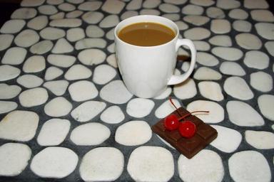 Keywords: coffee cherries chocolate mosaic river rock white black caulk stone tile natural rocks food sweet cherry red brown bar mug cup cocoa mocha hot