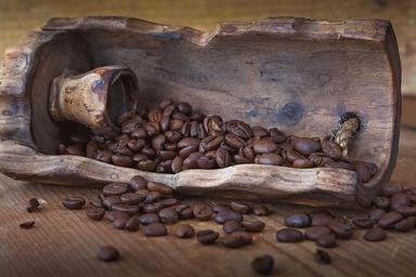 Keywords: coffee coffee beans roasted caffeine dry wooden shovel close