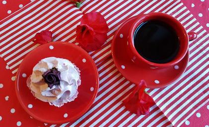 Keywords: coffee coffee drink cup coffee cup ceramic saucer porcelain valentine's day red black white decoration flowers cake cupcake decorative romantic pampering