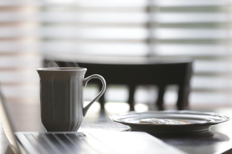 Keywords: coffee cup plate table breakfast chair morning mug caffeine saucer cafe computer laptop drink meal gourmet restaurant refreshment