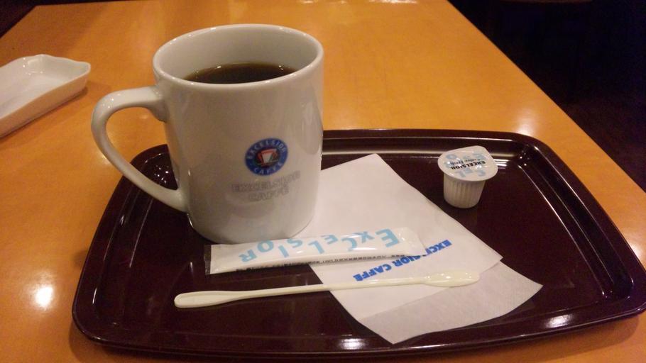 Keywords: Coffee Excel.JPG en Excellcior Cafe Blendcoffee ja エクセルシオールカフェのブレンドコーヒー 自分で撮影 私 Excelsior Caffe Cups of black coffee White coffee cups Trays