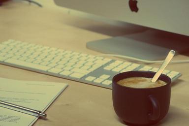 Keywords: coffee latte cappuccino mac computer desktop keyboard papers notes pen office desk business creative technology