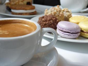 Keywords: coffee macaron treat dessert sweet colourful cup gourmet tasty food assortment table sugar
