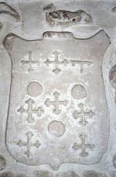 | Keywords: CoffinArmsMonkleighChurchDevon.JPG en 16th century heraldic escutcheon with arms of Coffin family Lords of the manor of Monkleigh Devon Azure three bezants between nine crosses crosslet or with crest a bird of some form Detail from the Coffin mural monument Monkleigh Church own photo Lobsterthermidor <span class signature-talk >talk</span> 00 15 23 June 2013 UTC Sculpture 16th c photo 2013 Monkleigh church Interiors of churches in Devon Reliefs of coats of arms in England Coffin arms | ||||
