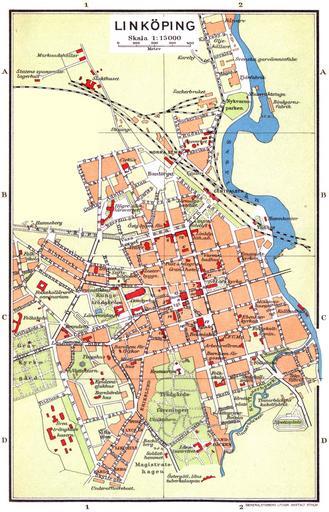 Keywords: Cohrs Linköping 1928.jpg en Map of Linköping Sweden sv Karta över Linköping 1 Rådhuset 2 Biskopsgården 3 Östergötlands läns hushållningssällskap 4 Östergötlands museum 5 Elementarläroverk för flickor 6 Ljungstedtska tekniska yrkesskolan 7 Riksbankens avdelningskontor 8 Skandinaviska kreditaktiebolagets avdelningskontor 9 Sydsvenska bankens avdelningskontor 10 Östergötlands enskilda bank 11 Linköpings sparbank 12 Frimurarelogen och Frimurarehotellet 13 Stora hotellet 14 Centralpalatset 15 Borgarhemmet 16 S t Larstorget 17 Tanneforstorget 18 Hospitalstorget Namn i kartans sektor A1 Marknadshallar Slakthuset Statens spannmålslagerhus Steninge A2 Bindgarnsfabrik Båtvarv Generalsgatan Kareby Karebygatan Magasinsgatan Nykvarnsgatan Nykvarnsparken Oljekällare Oskarsgatan Rudsjögatan Slussvaktstuga Sockerbruket Sockerbruksgatan Stånggatan Svenska garvämnesfabriken Tjärfabrik B1 Bantorget Berzeliigatan Biblioteksgatan Birger Jarls-gatan Cirkus Engelbrektsgatan Gråbrödragatan Gustav Adolfs-gatan Hunneberg Hunnebergsgatan Högre allmänna läroverket Karlsgatan Konsistoriegatan Norra station Platensgatan Stjärnorpsgatan Sturegatan Sveagatan Teater Vasatorget Vasavägen Östgöta hypoteks förening B2 Bantorget Centralhotellet Centralstation Emanuelskyrkan Fabriksgatan Gasverket Gjuteri Hamnkontor Järnvägsgatan Järnvägshotellet Klostergatan Kungsgatan Linköpings lithografiska aktiebolag Norra station Nykvarnsgatan Oskarsgatan Repslagaregatan Rudsjögatan Sankt Lars kyrka Snickaregatan Sturegatan Svartån Tullhus Varmbadhus Vasavägen C1 Apotekaregatan Barfotagatan Barnhem för flickor Barnhemsgatan Biblioteksgatan Biskopsgatan Brandstation Brunnsgatan Djurgårdsgatan Domkyrkan Domkyrkogatan Drottninggatan Folkskollärareseminarium Folkungagatan Gravkyrkogård Griftgårdsgatan Gråbrödragatan Gröngatan Gymnastikhus Hunnebergsgatan Järntorget Kanbergsgatan Kaserngatan Klosterbyggnad Konsistoriegatan Kungsgatan Kungsträdgården Länscellfängelse länsresidenset Läroverksgatan Missionshus Nygatan Onkel Adams gata Platensgatan Restaurant Sankt Korsgatan Stadshuset Stiftsbibliotek Storgatan Tennishall Tingshus Trädgårdsgatan Vattentorn Västanågatan Västra vägen C2 Apotekaregatan Arbetareföreningen Badhusgatan Barnhem för gossar Betaniakapellet Bokhållaregatan Borgmästaregatan Domkyrkogatan Drottninggatan Ebenezerkyrkan Emanuelskyrkan Folkskollärareseminarium Grand hôtel Gripgatan Hamngatan Hospitalsgatan Kallbadhus K F U M Kungsgatan Lilla Tinnerbäcksparken Linnegatan Magasinstorget Magnus Ströms-gatan Missionshus Mörnersgatan Nygatan Post och telegraf Repslagaregatan Restaurant Sankt Lars kyrka Småskollärarinneseminarium Snickaregatan Stadshuset Stora Badstugatan Stora torget Storgatan Strandgatan Styrmansgatan Tanneforsgatan Teknisk fabrik Torggatan Varmbadhus Ågatan D1 Backaberg Barnbördshus Barnhemsgatan Djurgårdsgatan Ekkällevägen Epidemisjukhus Erikslund Fridtunagatan Föreningsgatan Karlberg Karlbergsgatan Kaserngatan Lindhult Lindhultsgatan Magistratsgatan Magistratshagen Skyttegatan Soldathemmet Stolplyckan Svea trängkårs kasern Trädgårdsföreningen Tränggatan Underofficersbostäder Utsiktstorn Villaplan D2 Boiro Idrottsplats Idrottsplats Jättegrytor Kittelbergsgatan Lasarettsgatan Magistratshagen Munkegatan Sandbäcken Sandbäcksgatan Skepparegatan Småskollärarinneseminarium Soldathemmet Stora Tinnerbäcksparken Teknisk fabrik Tinnerbäcken Tinnerbäckens kakelfabrik Torkelbergsgatan Trädgårdsföreningen Utsiktstorn Östergötlands läns tuberkulospaviljong Cropped version of Cohrs atlas över Sverige 0025 Hälsingborg Örebro Linköping jpg Cartographer Edvard Cohrs 1858-1934 Scanned by LA2 1928 PD-old 1928 in Linköping Maps from Cohrs atlas över Sverige Innerstaden Linköping Old maps of Linköping