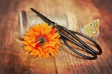Keywords: coil wooden reel yarn scissors old scissors fabric flower dekoblume butterfly deco decoration decorative close