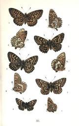 | Keywords: Colemans British Butterflies Plate XI.png Plate XI from W S Coleman's British Butterflies 1860 1 Small Pearl-bordered Fritillary 2 Glanville Fritillary 3 Pearl-bordered Likeness Fritillary modern Heath Fr 4 Greasy Fritillary Marsh Fr 5 Duke of Burgundy Fritillary 2010-10-11 Keith Edkins W S Coleman's British Butterflies PD-old Coleman's British Butterflies Files from Project Gutenberg Boloria selene Melitaea cinxia illustrations Melitaea athalia Euphydryas aurinia Hamearis lucina | ||||