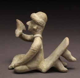| Keywords: Colima - Group of Figurines and Architectural Model - Walters 20092033 - Left Side (2).jpg Narrative groupings of figurines in architectural settings have been found throughout Mesoamerica in contexts dating as early as the Middle Formative Period 900-400 BCE Some are made from jadeite and similar precious stones such as an Olmec ceremonial scene of sixteen figurines arranged in a semicircle and framed by six column-like celts Others are composed of modeled ceramic figures depicting a burial or ancestor veneration rite complete with elaborately dressed performers and musicians like that found above Tomb 103 at Monte Albán Oaxaca The objects that constitute these figure groups generally share the same aesthetic style and manufacturing technique which suggests they were made at the same time as a single artistic statement The disparate artistic styles and technical features suggest that these nine Colima figurines and one building model might be a modern grouping although dissimilar figurines have been documented in figure groupings found in the same tomb In this instance archaeological confirmation is not available The figurine types represent at least two styles from Colima-Jalisco including the Tuxcacuesco-Ortices type nos 33 3 33 8 and 33 9 and two from the Colima-Jalisco border region nos 33 4 and 33 5 The house model no 33 1 depicts a typical West Mexican domicile or ceremonial building without its basal earthen platform No architecture of comparable form is found in the region because these structures were made of perishable materials; only the earth-and-stone platforms have survived although many have been destroyed by modern agricultural activities These architectural models thus document the lost architectural heritage of ancient West Mexico The figures portray men and women performing both ritual and daily activities from mothers tending children nos 33 3 and 33 8 and grinding maize no 33 7 to men drumming no 33 6 or sitting regally and brandishing a fanlike scepter no 33 9 A seated hunchback figure which also is a whistle sports an elaborate head wrap and fine jewelry no 33 10 A dog-standing-atop-a-dog sculpture and two seated men with elongated heads complete the group nos 33 2 33 4 and 33 5 This elongated-head figurine style is associated with the northern Colima-Jalisco region and dates to the later years of the Comala phase ca 200-300 CE 200 BC-AD 400 earthenware 1 cm 16 9 13 1 13 7 ; 2 H 3 3/4 x L 3 13/16 x W 2 1/16 in 9 5 x 9 7 x 5 3 cm ; 3 cm 10 3 7 7 4 8 ; 4 cm 7 1 4 1 2 3 ; 5 cm 7 3 4 7 2 3 ; 6 cm 9 1 6 2 6 3 ; 7 cm 14 6 7 8 12 7 ; 8 cm 12 1 8 4 5 5 ; 9 cm 8 9 6 9 10 1 ; 10 cm 7 5 1 5 2 accession number 2009 20 33 80188 John G Bourne date and mode of acquisition unknown Walters Art Museum Gift of John Bourne 2009 place of origin Colima Mexico <gallery> File Colima - Group of Figurines and Architectural Model - Walters 20092033 - Left Side jpg </gallery> Walters Art Museum license Objects from Colima in the Walters Art Museum Media contributed by the Walters Art Museum needs category review |