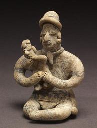 | Keywords: Colima - Group of Figurines and Architectural Model - Walters 20092033 - Three Quarter Front (2).jpg Narrative groupings of figurines in architectural settings have been found throughout Mesoamerica in contexts dating as early as the Middle Formative Period 900-400 BCE Some are made from jadeite and similar precious stones such as an Olmec ceremonial scene of sixteen figurines arranged in a semicircle and framed by six column-like celts Others are composed of modeled ceramic figures depicting a burial or ancestor veneration rite complete with elaborately dressed performers and musicians like that found above Tomb 103 at Monte Albán Oaxaca The objects that constitute these figure groups generally share the same aesthetic style and manufacturing technique which suggests they were made at the same time as a single artistic statement The disparate artistic styles and technical features suggest that these nine Colima figurines and one building model might be a modern grouping although dissimilar figurines have been documented in figure groupings found in the same tomb In this instance archaeological confirmation is not available The figurine types represent at least two styles from Colima-Jalisco including the Tuxcacuesco-Ortices type nos 33 3 33 8 and 33 9 and two from the Colima-Jalisco border region nos 33 4 and 33 5 The house model no 33 1 depicts a typical West Mexican domicile or ceremonial building without its basal earthen platform No architecture of comparable form is found in the region because these structures were made of perishable materials; only the earth-and-stone platforms have survived although many have been destroyed by modern agricultural activities These architectural models thus document the lost architectural heritage of ancient West Mexico The figures portray men and women performing both ritual and daily activities from mothers tending children nos 33 3 and 33 8 and grinding maize no 33 7 to men drumming no 33 6 or sitting regally and brandishing a fanlike scepter no 33 9 A seated hunchback figure which also is a whistle sports an elaborate head wrap and fine jewelry no 33 10 A dog-standing-atop-a-dog sculpture and two seated men with elongated heads complete the group nos 33 2 33 4 and 33 5 This elongated-head figurine style is associated with the northern Colima-Jalisco region and dates to the later years of the Comala phase ca 200-300 CE 200 BC-AD 400 earthenware 1 cm 16 9 13 1 13 7 ; 2 H 3 3/4 x L 3 13/16 x W 2 1/16 in 9 5 x 9 7 x 5 3 cm ; 3 cm 10 3 7 7 4 8 ; 4 cm 7 1 4 1 2 3 ; 5 cm 7 3 4 7 2 3 ; 6 cm 9 1 6 2 6 3 ; 7 cm 14 6 7 8 12 7 ; 8 cm 12 1 8 4 5 5 ; 9 cm 8 9 6 9 10 1 ; 10 cm 7 5 1 5 2 accession number 2009 20 33 80188 John G Bourne date and mode of acquisition unknown Walters Art Museum Gift of John Bourne 2009 place of origin Colima Mexico <gallery> File Colima - Group of Figurines and Architectural Model - Walters 20092033 - Three Quarter Front jpg </gallery> Walters Art Museum license Objects from Colima in the Walters Art Museum Media contributed by the Walters Art Museum needs category review |