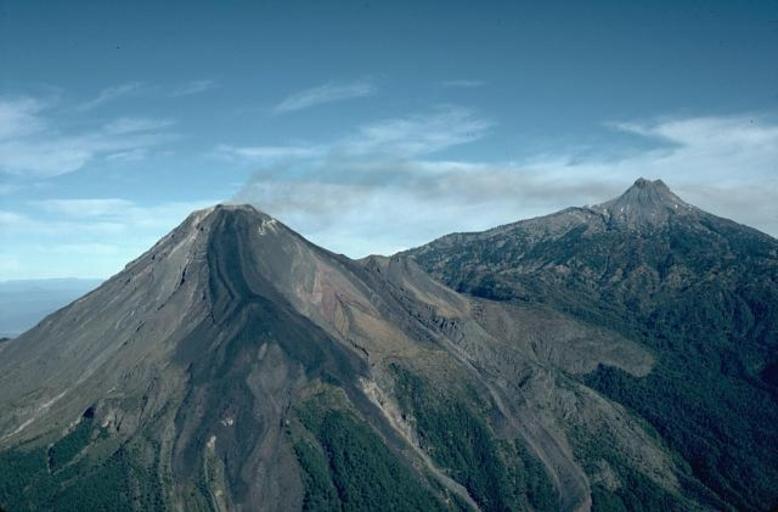 Keywords: Colima volcano.jpg The Colima volcanic complex consists of the massive overlapping stratovolcanoes Nevado de Colima the 4240 m high point of the complex at the right and Volcán de Colima left http //www volcano si edu/world/volcano cfm vnum 1401-04 volpage photos photo 036073 1981 James Allan Smithsonian Institution PD Smithsonian Institution is administered by the U S government Photos taken by Smithsonian Institution's employees are thus without restriction confirmed by Mr Edward Venzke from Smithsonian Institution PD-USGov Colima Volcano Lava flows |