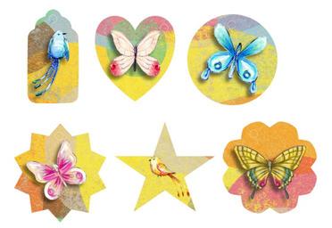 Keywords: collage bird butterfly star tag scrapbooking element gift arts and crafts creative watercolor craft artistic color colorful hobby design orange blue yellow label png