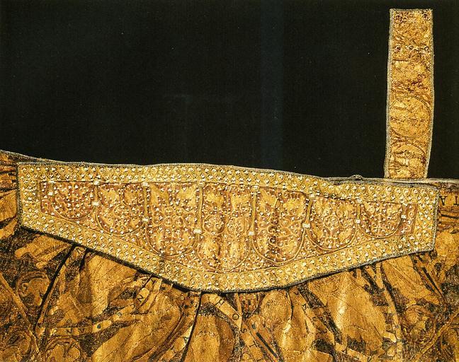 | Keywords: Collar of the coronation pall.jpg author 1031 textile embroidery Institution Hungarian National Museum Budapest object history credit line accession number own scanned by Szilas from A magyar Szent Korona by Tóth Endre Szelényi Károly Kossuth 2000 Budapest PD-old-100 Coronation pall of Hungary |