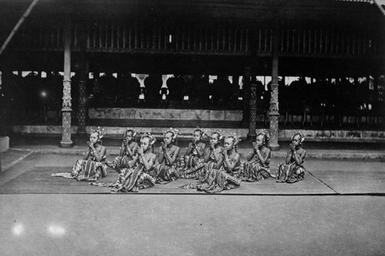 | Keywords: COLLECTIE TROPENMUSEUM Bedoyo danseressen aan het hof van de Sultan van Jogjakarta TMnr 10003795.jpg nl Repronegatief Bedoyo danseressen aan het hof van de Sultan van Jogjakarta ca 1884 institution Tropenmuseum KIT-source 10003795 Creator Kassian Cephas KIT-license PD-old-100 Kraton of Yogyakarta 19th-century photographs of bedhaya 1884 Black and white photographs Photographs by Kassian Cephas | ||||