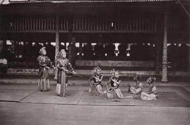 | Keywords: COLLECTIE TROPENMUSEUM Danseressen aan het hof van de Sultan van Jogjakarta TMnr 60046818.jpg en A group of four srimpi another category of court-dancers performing a scene from the Putri Cina story in the Kraton Each character is played by two dancers The character at left is the Chinese princess Dewi Adaninggar who tries to kill her rival in love princess Kelaswara This picture is plate VIII of Isaäc Groneman's In den Kedaton te Jogjåkartå G Knaap 1999 nl Foto Danseressen aan het hof van de Sultan van Jogjakarta ca 1884 institution Tropenmuseum KIT-source 60046818 Creator Kassian Cephas KIT-license PD-old-100 Women of Yogyakarta Dancers from Java Kraton of Yogyakarta Photographs by Kassian Cephas Images from KIT Voorstelling Activiteit / Functie - decors podiumbenodigdheden 19th-century photographs of Indonesian dance 1884 Black and white photographs Isaäc Groneman |