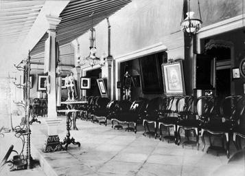 | Keywords: COLLECTIE TROPENMUSEUM De voorgalerij van de audiëntiezaal Gedung Kuning in de kraton van Sultan Hamengko Boewono VII te Djokjakarta. TMnr 60004762.jpg nl Foto Op achterwand foto van Prinses Wilhelmina E A De voorgalerij van de audiëntiezaal Gedung Kuning in de kraton van Sultan Hamengko Boewono VII te Djokjakarta ca 1890 institution Tropenmuseum KIT-source 60004762 Creator Kassian Cephas KIT-license PD-old-100 Images from KIT Voorstelling Activiteit / Functie - vloeren en vloerbedekking Images from KIT Voorstelling Activiteit / Functie - huisraad Images from KIT Voorstelling Activiteit / Functie - aan- zitten Ceiling light fixtures in Indonesia z Images from KIT Voorstelling Activiteit / Functie - kunst Photographs by Kassian Cephas Kraton of Yogyakarta Black and white photographs |