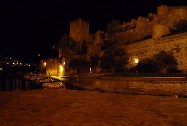Keywords: collioure france night sea port south tower
