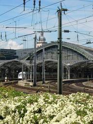 Keywords: cologne train central station railway station railway catenary seemed steel structure station roof cologne main station steel railroad track travel rail traffic public means of transport