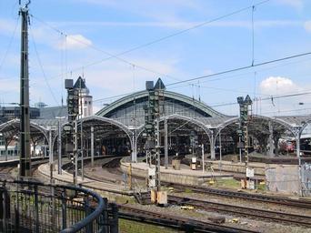Keywords: cologne train central station railway station railway catenary seemed steel structure station roof cologne main station steel railroad track travel rail traffic public means of transport