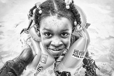 Keywords: colombian portrait eyes girl afro swimming swimming pool life vest