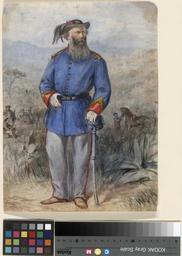 | Keywords: Colonel John Whitehead Peard- Commonly Known as Garibaldi's Englishman WDL2952.png Artwork ru аст Томас 1840-1902 гг fr Nast Thomas 1840-1902 en Nast Thomas 1840-1902 zh 托马斯·纳斯特,1840-1902 年 pt Nast Thomas 1840-1902 ar توماس ناست، 1840-1902 es Nast Thomas 1840-1902 ru Полковник Джон Уайтхед Пеа д всем известный как англичанин из а мии Га ибальди fr Colonel John Whitehead Peard connu sous le nom de l'Anglais de Garibaldi en Colonel John Whitehead Peard Commonly Known as Garibaldi's Englishman zh 上校约翰· 特海·佩德:常被称为加里波第的英国人 pt Coronel John Whitehead Peard Vulgarmente Conhecido como o Inglês de Garibaldi ar العقيد جون وايتهد بيرد المعروف باسم رجل غاريبالدي الإنجليزي ru Пе воначально считалось что на этом о игинальном аква ельном исунке подписанном и дати ованном 22 августа 1860 года Томасом астом 1840-1902 гг изоб ажен итальянский пат иот Джузеппе Га ибальди но потом было установлено что это полковник Джон Уайтхед Пе д Пе д сын английского адми ала известный как англичанин кото ый заодно с Га ибальди получил в Оксфо де ю идическое об азование К Га ибальди он п исоединился в 1860 году якобы по п ичине жестокости чиновников свидетелем кото ой он стал во в емя визита в еаполь Пе д п инимал участие в войнах за итальянское объединение и был наг ажден К естом за доблесть ко олем Викто ом Эммануилом II После отставки Га ибальди Пе д возв атился в Ко нуэлл и жил тихой жизнью викто ианского джентльмена К этому аква ельному исунку п илагается две фотокопии из<i> New York Illustrated News </i> с изоб ажением ка тины в том виде как она появилась в газете 27 октяб я 1860 года Работа входит в Военную коллекцию Анны С К Б аун х анящейся в Библиотеке Б ауновского униве ситета самой выдающейся аме иканской коллекции посвященной исто ии и иконог афии военнослужащих и воинской службы и одной из к упнейших ми овых коллекций посвященных изучению военных и военно-мо ских мунди ов <br>Пеа д Джон Уайтхед 1811-1880 гг ; Солдаты; Унифо мы fr Cette aquarelle originale signée et datée du 22 août 1860 par Thomas Nast 1840-1902 fut initialement considérée comme un portrait du patriote italien Giuseppe Garibaldi mais identifiée par la suite comme représentant le Colonel John Whitehead Peard Connu comme l'Anglais de Garibaldi Peard était un juriste formé à Oxford et le fils d'un Amiral britannique Il rejoignit Garibaldi en 1860 apparemment en raison de la brutalité des représentants gouvernementaux dont il fut témoin au cours de sa visite à Naples Peard combattit au cours de guerres d'unification italienne et se vit attribuer la Croix de l'Ordre de la bravoure par le Roi Victor Emmanuel II Après la retraite de Garibaldi Peard retourna à Cornwall et y vécut la vie paisible d'un gentleman victorien L'aquarelle est accompagnée de deux photostates provenant des<i> New York Illustrated News</i> montrant la peinture telle qu'elle apparut dans le journal le 27 octobre 1860 L'œuvre provient de la collection militaire Anne S K Brown à la Bibliothèque de l'Université Brown la plus importante collection américaine consacrée à l'histoire et à l'iconographie des soldats et à la vie militaire et l'une des plus vastes collections au monde dédiée à l'étude des uniformes militaires et marins <br>Peard John Whitehead 1811-1880; Soldats; Uniformes en This original watercolor signed and dated August 22 1860 by Thomas Nast 1840-1902 originally was thought to be of Italian patriot Giuseppe Garibaldi but later was identified as showing Colonel John Whitehead Peard Known as Garibaldi s Englishman Peard was an Oxford-educated lawyer and the son of a British admiral He joined Garibaldi in 1860 ostensibly because of the brutality of the officials he witnessed during a visit to Naples Peard fought in the wars of Italian unification and was awarded the Cross of the Order of Valour by King Victor Emmanuel II Following Garibaldi s retirement Peard returned to Cornwall and lived the quiet life of a Victorian gentleman The watercolor is accompanied by two photostats from the<em> New York Illustrated News</em> showing the painting as it appeared in the paper on October 27 1860 The work is from the Anne S K Brown Military Collection at the Brown University Library the foremost American collection devoted to the history and iconography of soldiers and soldiering and one of the world s largest collections devoted to the study of military and naval uniforms <br>Peard John Whitehead 1811-1880; Soldiers; Uniforms zh 这幅水彩画原 上 托马斯·纳斯特(1840-1902 年)的签名和标注的日 1860 年 8 22 日,起 人们认为该画 画的是意大利爱国志士 塞佩·加里波第,但后 确定该图 画的是约翰· 特海德·皮尔德上校 皮尔德被称为 加里波第的英国人 ,是 位曾 牛津大学接受过教育的律师,他的父亲是 位英国海军上