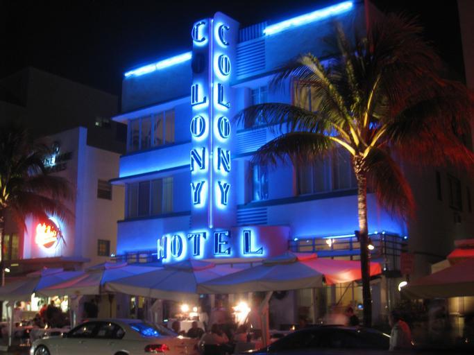 Keywords: Colony Hotel - South Beach, Miami.jpg Colony Hotel - South Beach Miami Florida USA Own 2009-04-02 Daderot Public domain Art Deco architecture in Miami Beach Illuminated buildings in Florida Neon signs in Florida Colony Hotel South Beach