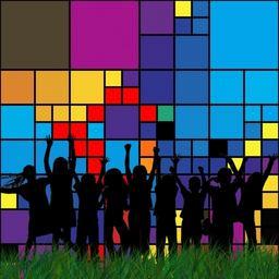 Keywords: color colorful diamonds children cheers joy poor community grass look forward