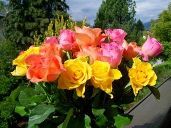 Keywords: colorful bouquet of roses yellow pink cut flower