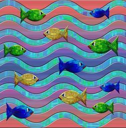 Keywords: colorful fish water abstract swimming gold green royal blue waves wavy group fishes swim aquatic creative fun tropical background backdrop wallpaper mosaic tiles shiny 3d