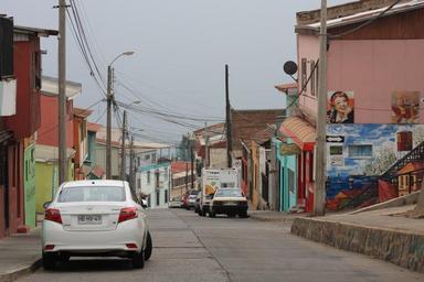 Keywords: valparaiso chile america south latin panorama painting street view port outdoor hill south america brick town urban bright sunny scenery district church area place unesco latin america colors architecture city