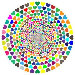 Keywords: colorful prismatic chromatic rainbow hearts love romance passion relationship valentine vortex maelstrom cyclone twirl whirlpool abstract geometric art