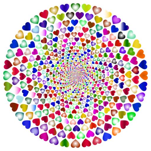 Keywords: colorful prismatic chromatic rainbow hearts love romance passion relationship valentine vortex maelstrom cyclone twirl whirlpool abstract geometric art