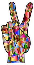 Keywords: colorful prismatic chromatic rainbow triangles triangular low poly polygon abstract geometric art hand peace sign symbol