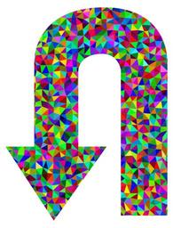 Keywords: colorful prismatic chromatic rainbow triangles triangular low poly polygon abstract geometric art arrow direction pointing find navigation u turn vector svg