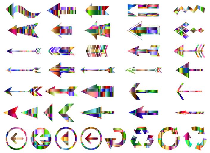 Keywords: colorful prismatic chromatic checkered rainbow abstract geometric art arrows shoot point direction navigation set