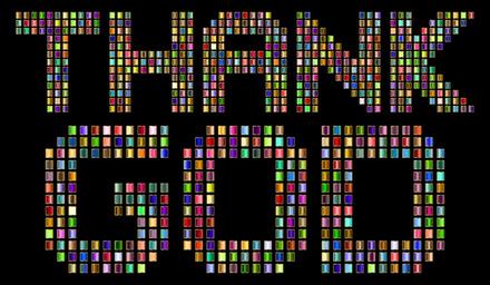 Keywords: colorful prismatic chromatic rainbow squares mosaic abstract geometric art thanks gratitude god divine holy religion creator typography type text words