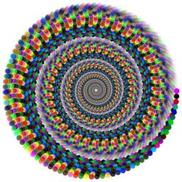 Keywords: colorful prismatic chromatic rainbow swirling circles dots vortex maelstrom cyclone twirl whirlpool abstract geometric art