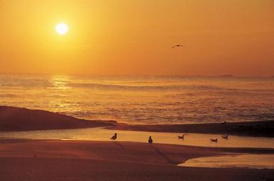 Keywords: sunset beach over beach sky water sunlight sunbeam bird spring cloud travel sunrise day horizontal destinations yellow horizon night orange summer solitude light rippled open dusk twilight sun wave season shiny refl