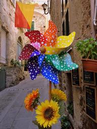 Keywords: colors pinwheel sunflowers colorful pinwheels road via historical centre