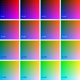 Keywords: Colours.svg RGB Colour table Own 2007-09-01 HandigeHarry thumb RGB Squares with 16 fields 17x17 arrays