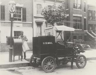 | Keywords: smithsonian institution smithsonianinstitution columbia mark 3 touring car columbiamark3touringcar usps mailbox mailman postman street lamp streetlamp postal service postalservice gas light gaslight row house rowhouse street mail post mail truck mailtruck u.s. mail usmail vintage early 20th century early20thcentury outdoors mail carrier mailcarrier worker mail across the commons mailacrossthecommons national postal museum nationalpostalmuseum monochrome Description: Letter carrier removes mail from a sidewalk collection box. The carrier was driving a Columbia vehicle to make these collections. Postmaster General Alfred Hitchcock originally purchased two Columbia Mark 3 Touring Cars for service tests in Baltimore, Maryland. Creator/Photographer: Unidentified photographer Medium: Black and white photographic print Culture: American Geography: USA Date: 1906 Collection: U.S. Mail Trucks Repository: National Postal Museum Accession number: A.2008-19 Persistent URL: arago.si.edu/index.asp?con=2&cmd=1&id=194371 View more collections from the Smithsonian Institution. Description: Letter carrier removes mail from a sidewalk collection box. The carrier was driving a Columbia vehicle to make these collections. Postmaster General Alfred Hitchcock originally purchased two Columbia Mark 3 Touring Cars for service tests in Baltimore, Maryland. Creator/Photographer: Unidentified photographer Medium: Black and white photographic print Culture: American Geography: USA Date: 1906 Collection: U.S. Mail Trucks Repository: National Postal Museum Accession number: A.2008-19 Persistent URL: arago.si.edu/index.asp?con=2&cmd=1&id=194371 View more collections from the Smithsonian Institution. |
