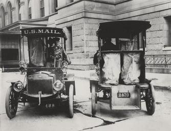 | Keywords: smithsonian institution smithsonianinstitution usps columbia mark 3 touring car columbiamark3touringcar cars mail post carsmailpost us mail usmail 1906 post office postoffice mail vintage mail carriers mailcarriers cars antique us postal service uspostalservice postal service postalservice mail history mailhistory mail across the commons mailacrossthecommons national postal museum nationalpostalmuseum blackandwhite black and white Description: Two Columbia Mark mail trucks face in opposite directions. Creator/Photographer: Unidentified photographer Medium: Black and white photographic print Geography: USA Date: 1906 Collection: U.S. Mail Trucks Repository: National Postal Museum Accession number: A.2006-66 Persistent URL: arago.si.edu/index.asp?con=2&cmd=1&id=194318 Description: Two Columbia Mark mail trucks face in opposite directions. Creator/Photographer: Unidentified photographer Medium: Black and white photographic print Geography: USA Date: 1906 Collection: U.S. Mail Trucks Repository: National Postal Museum Accession number: A.2006-66 Persistent URL: arago.si.edu/index.asp?con=2&cmd=1&id=194318 |