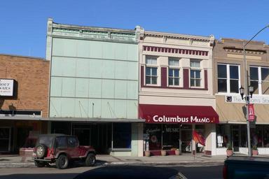 | Keywords: Columbus, Nebraska 2514-2516 13th St.JPG North side of 2500 block of 13th Street in Columbus Nebraska The block is part of the Columbus Commercial Historic District which is listed in the National Register of Historic Places The rightmost building The Groom's Store is the former Reece Shoe Co at 2512 built ca 1913 The building to its left with Columbus Music on the awning is the Hansen Building at 2514 built ca 1914 The pale green building to the left of that is a former bowling alley at 2516 built ca 1902 The brick building partly visible at the left of the picture is the former Palace Meat Market at 2518 built ca 1913 The former bowling alley is a non-contributing property in the Historic District; the other three buildings are contributing properties own 2010-02-12 Ammodramus Pictures by Ammodramus Taken with Panasonic Lumix DMC-FZ20 Columbus Commercial Historic District Built in Nebraska in 1902 Built in Nebraska in 1913 Built in Nebraska in 1914 Shops in Nebraska Former bowling alleys in the United States Automobiles in Nebraska Jeep Wrangler YJ Awnings in the United States |