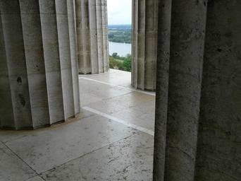 Keywords: columnar arcade labyrinth walhalla memorial hall of the fallen donaustauf ludwig i building large powerful impressive architecture view danube hill mountain outlook enormous