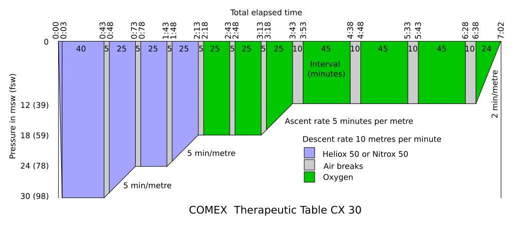 Keywords: Comex CX30 table.svg en Graphic representation of Comex Therapeutic Table CX 30 2015-11-12 own Pbsouthwood other versions cc-zero Decompression tables Uploaded with UploadWizard