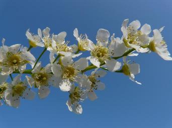 Keywords: common bird cherry black cherry tree flowers white spring bloom road sky