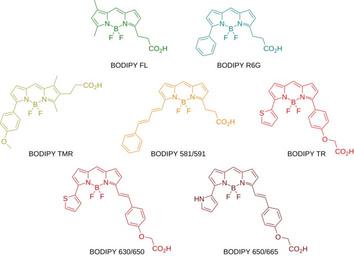 MAKE A MEME View Large Image Common bodipys.svg Structures of some BODIPY dyes Own 2016-03-26 Aloneinthewild <span class signature-talk ></span> PD-chem Organoboron-nitrogen compounds Fluorescent dyes