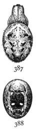 | Keywords: Common Spiders U.S. 387-8 Araneus nordmanni.png en Epeira nordmanni ”Upper and under markings of female enlarged twice 1902 The Common Spiders of the United States Ginn Company Boston 1902 James Henry Emerton 1847 “ 1931 other versions PD-old-70-1923 The Common Spiders of the United States Uploaded with UploadWizard Araneus nordmanni |