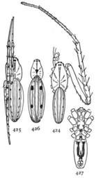 | Keywords: Common Spiders U.S. 424-7 Larinia directa.png en Larinia directa ”424 male with one front leg to show its great length 425 female with the legs of one side drawn up in a natural position showing the spots 426 female with four large spots on the back 427 under side All enlarged four times 1902 The Common Spiders of the United States Ginn Company Boston 1902 James Henry Emerton 1847 “ 1931 other versions PD-old-70-1923 The Common Spiders of the United States Uploaded with UploadWizard Larinia directa |